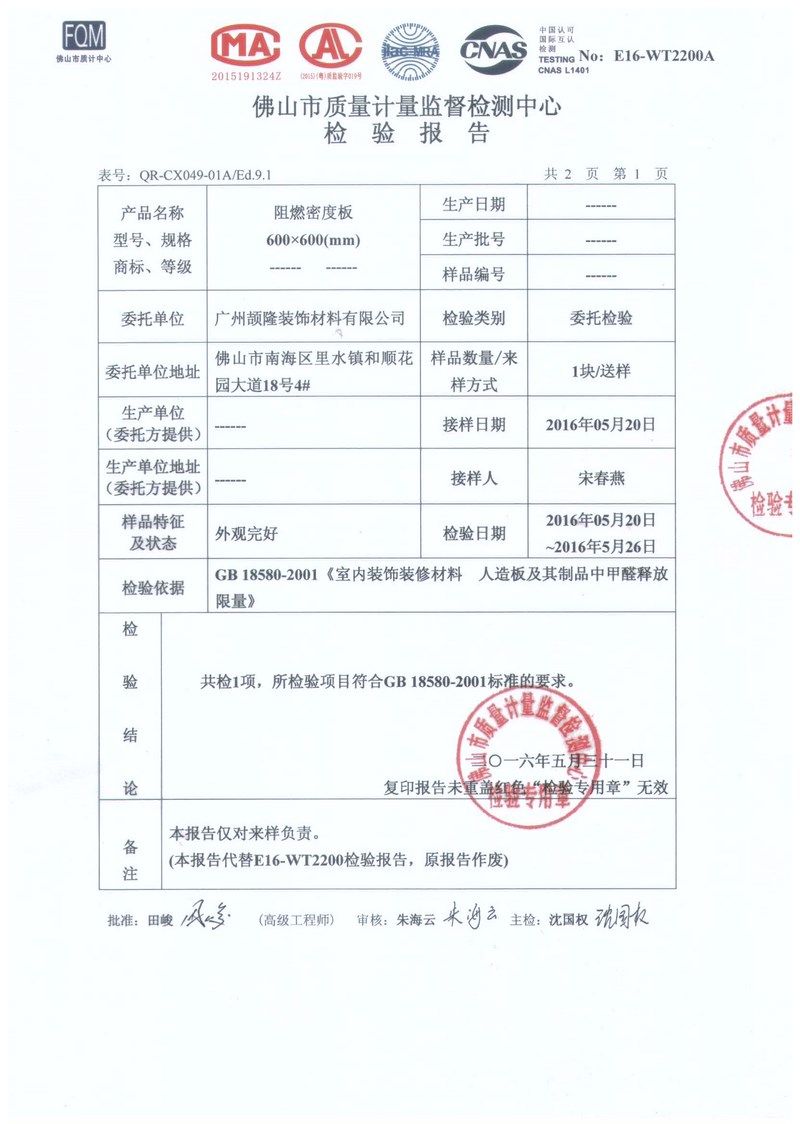 美標(biāo) ASTM E84 CLASS A 阻燃密度板
